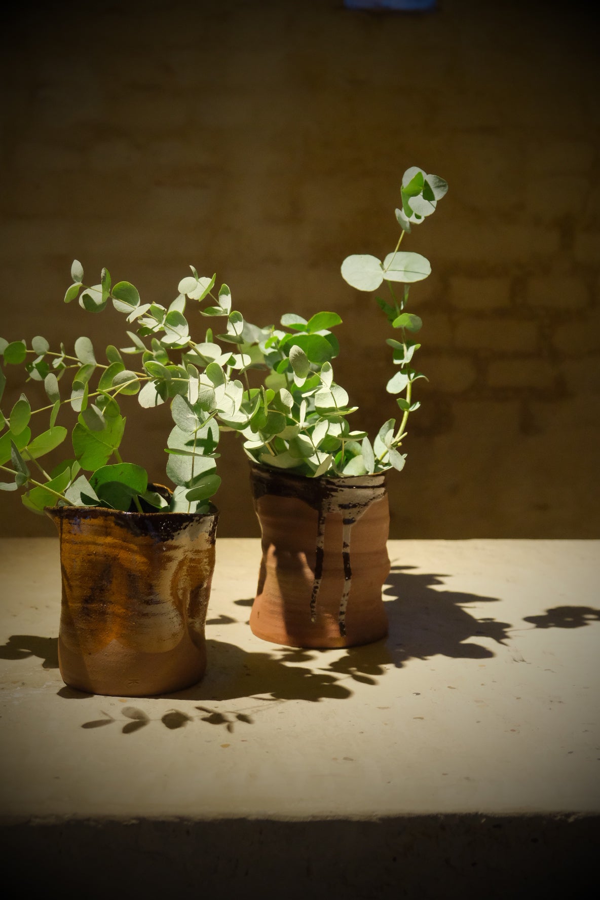 Matte brown/ rose exterior paired with a deep glossy brown rim and interior