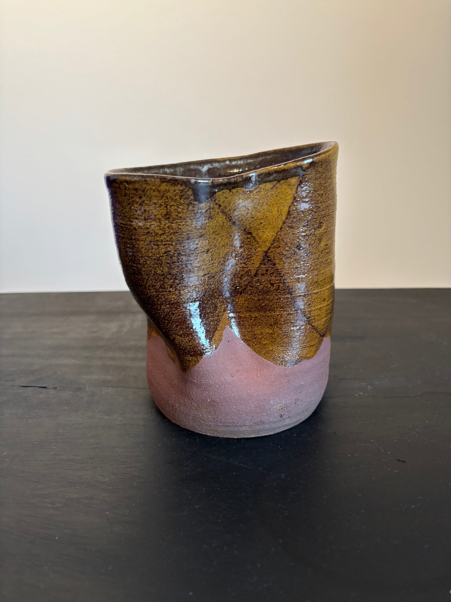 Handmade ceramic vase with an organic, softly twisted form